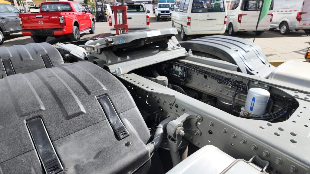 A nivel de transmisión, equipan una caja manual de 12 velocidades de la firma Eaton Fuller, con configuración de alta y baja. Este conjunto se complementa con sistemas como turbo e intercooler, además de cumplir con normativa Euro 3, un aspecto relevante considerando las condiciones del mercado local.